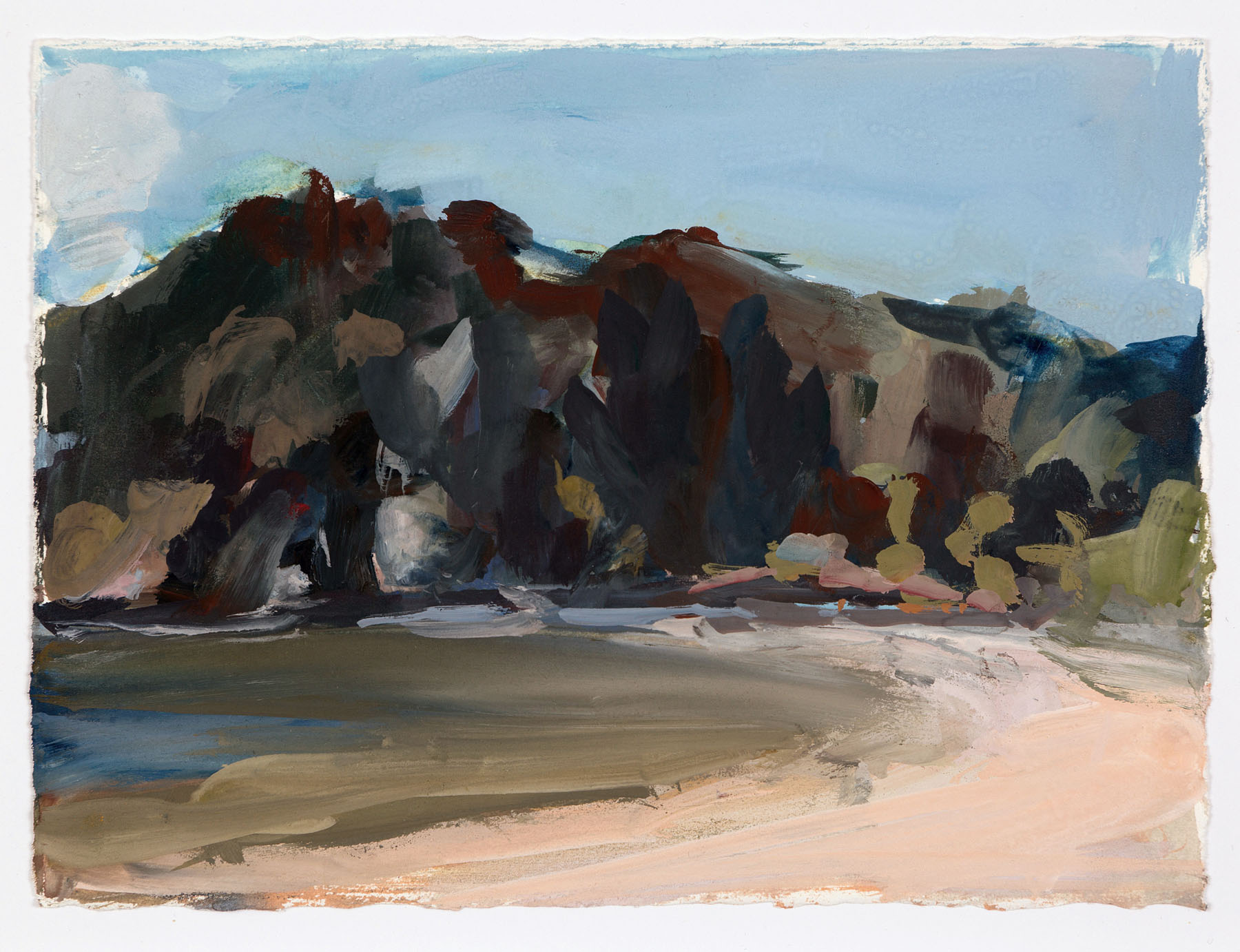 Here and There Published April 22, 2020 at 1800 × 1382 in Here and There 2019 ← Previous Next → Towards Dawsons Point – Gouache on paper 14 x 19 (37 x 41 framed)